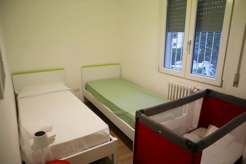立地が抜群!寝室が2部屋、ベビーベッドもあるので子連れには特におすすめです。