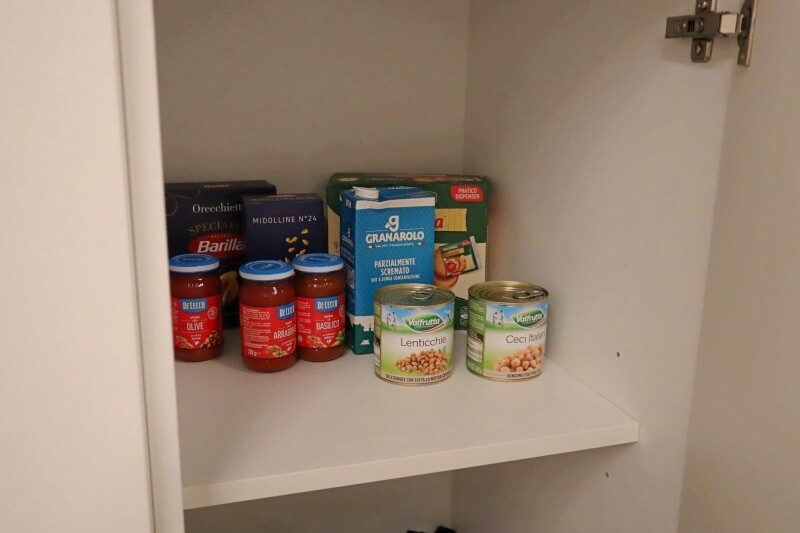 食料品や調味料、コーヒーなどもあったのが便利だった。まるっきり何にもないアパートとかたまにありますからね。このほか水のペットボトルも大量に置かれていて、2泊の滞在中はいちども買い物に行かなくて済みました。