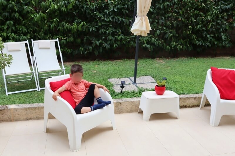 アパートに戻ったらお昼寝をし、その後は庭で遊んだりしていました。