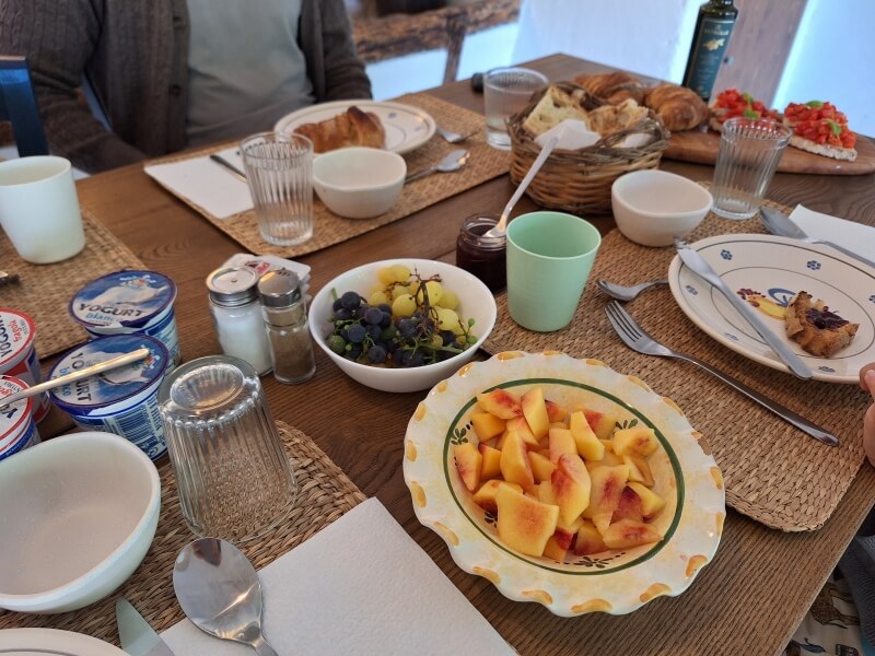 そして驚いたのが朝食。予約したBooking.comでは朝食有りとの記載はなかったのですが、着いてみたらクロワッサンやマフィン、ヨーグルトなどなど、2日分の朝食がしっかり用意されているではないですか。