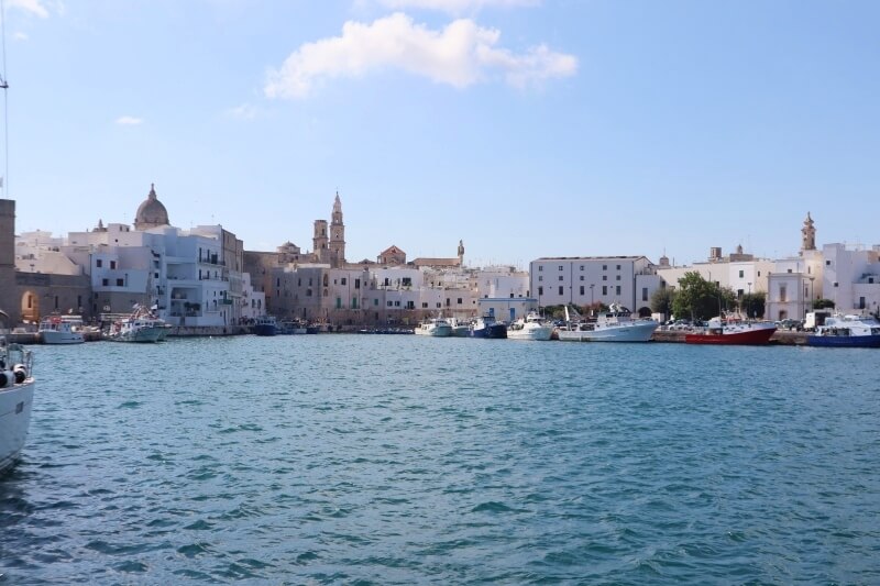 モノポリ(Monopoli)は古くから漁村として栄えた町。ここでは昔ながらの雰囲気が残る港をお散歩したり、城壁に囲まれた旧市街を散策しました。