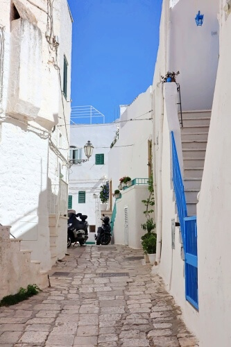 「白い要塞」とも言われるオストゥー二(Ostuni)。日本ではそこまで知られていない町ですが、ヨーロッパでは結構人気みたいで、アルベロベッロほどではありませんがだいぶ賑わっていました。